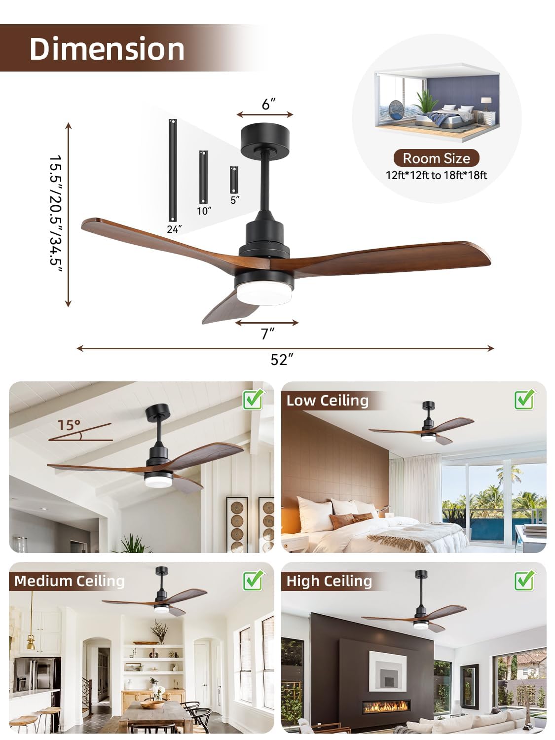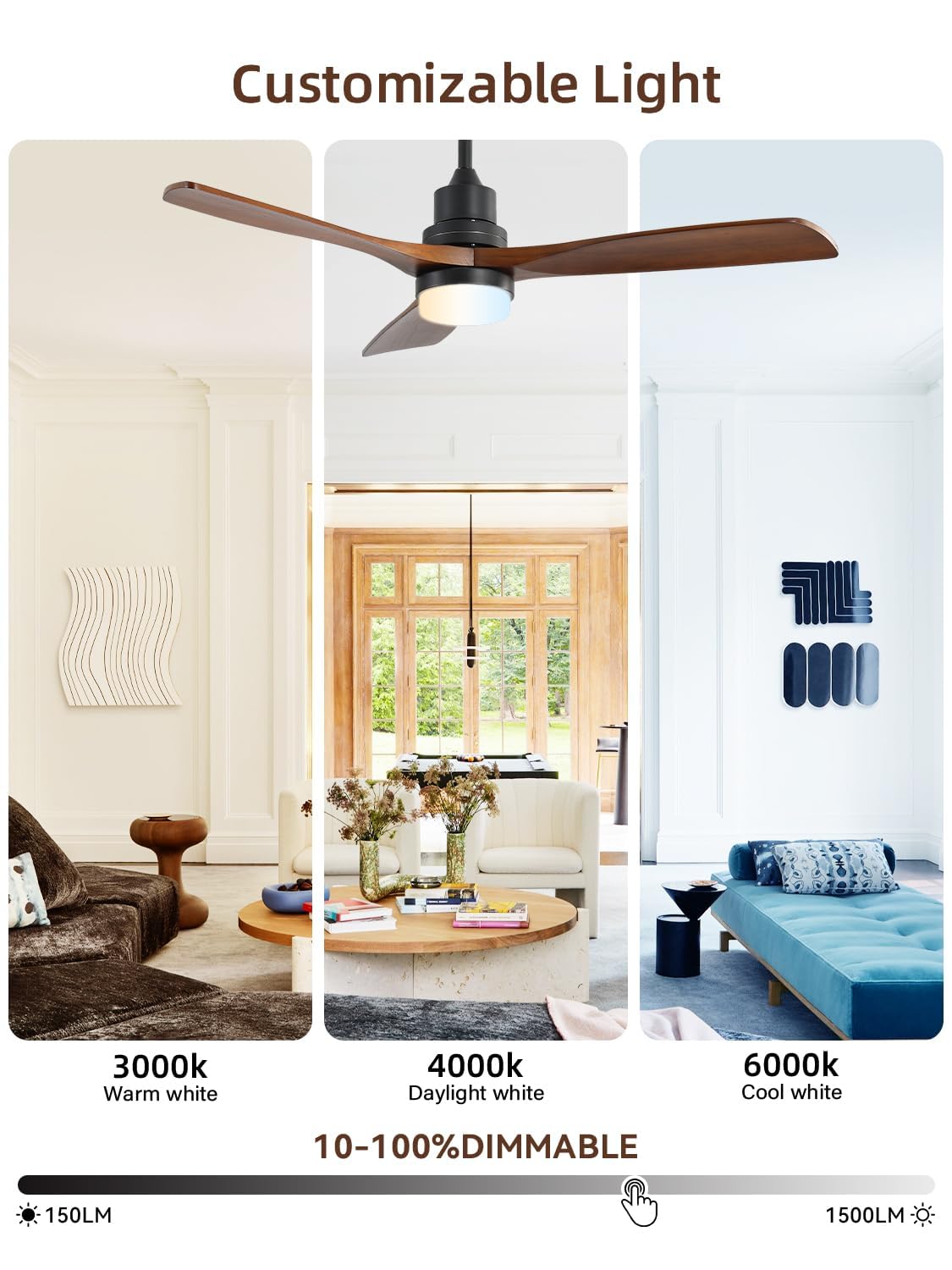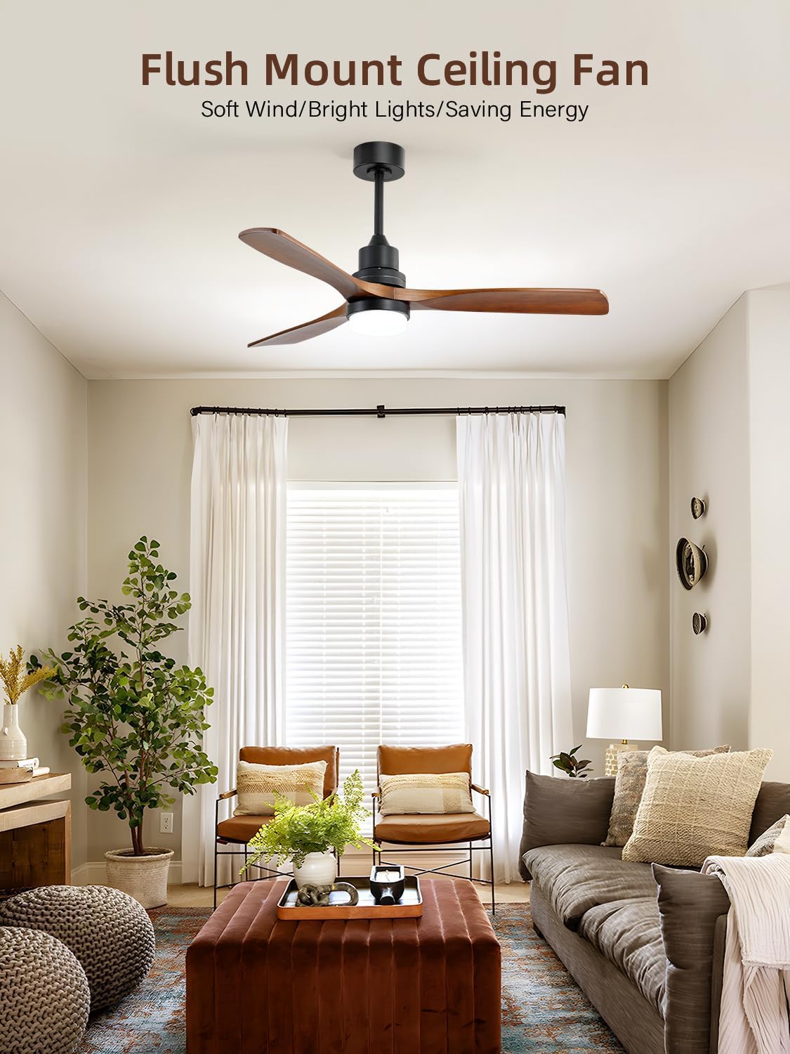 - Enhanced Energy Efficiency: Enjoy the benefits of our modern ceiling fan, featuring sleek wood blades and a quiet DC motor. Designed for superior energy performance, this DC motor consumes less electricity than standard models, helping you manage household energy costs. The added smart lighting feature provides further control, allowing you to customize your environment and optimize usage