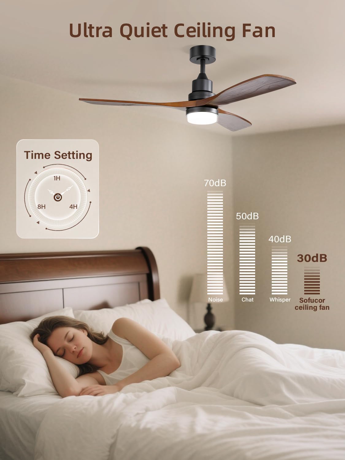 - Quiet DC Motor:Enjoy the ultimate comfort with our low-profile ceiling fan, featuring 3 wood blades that deliver a high CFM airflow of up to 5800CFM. The whisper-quiet, high-speed velocity DC motor ensures a noise level below 30dB, making it perfect for light sleepers.