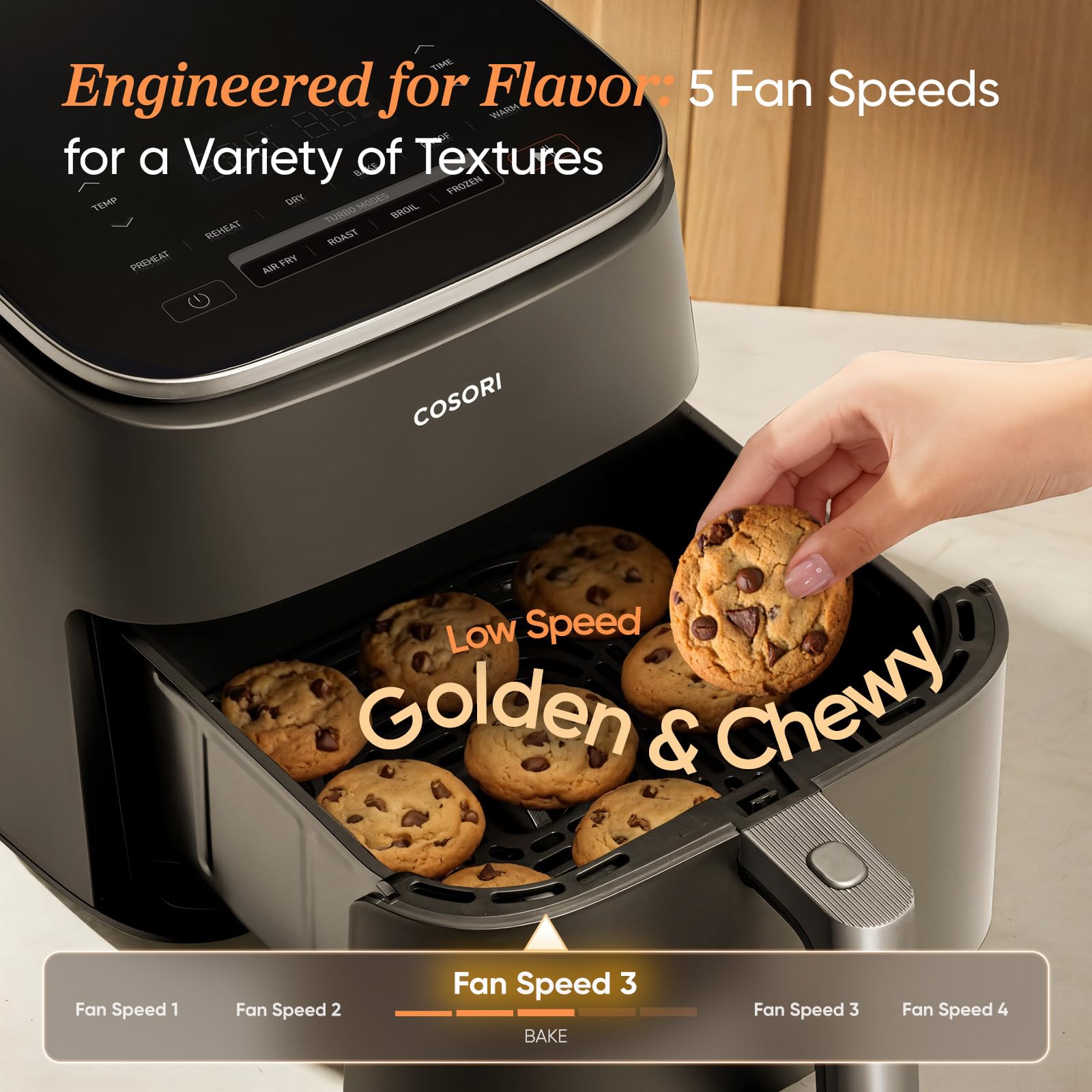 • 𝙃𝙚𝙖𝙩𝙞𝙣𝙜 𝙐𝙥𝙜𝙧𝙖𝙙𝙚: Cosori’s unique 5-fan speed system and precise 90°– 450°F temperature control deliver evenly cooked dishes with perfect texture in every bite