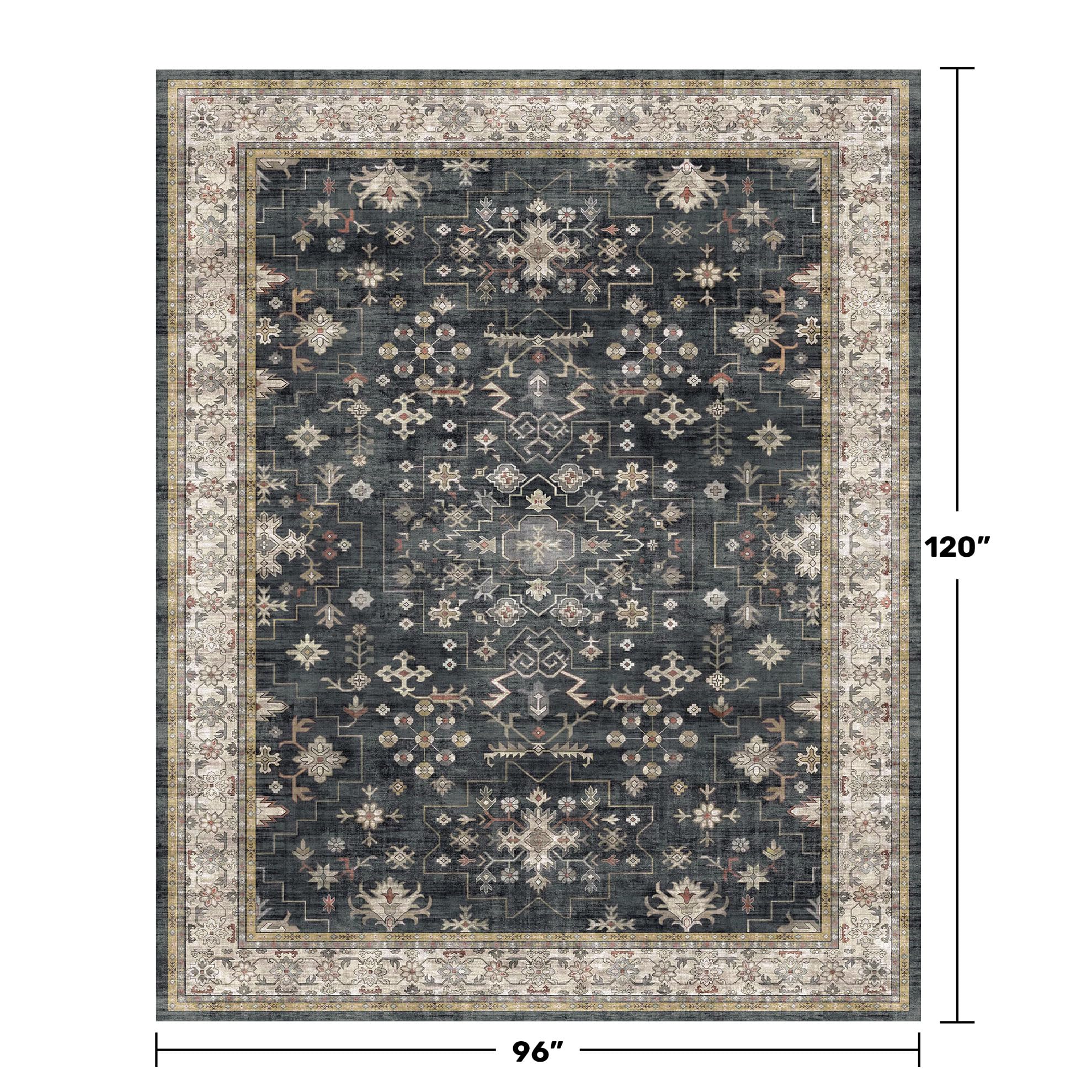 Black Farmhouse Washable 8×10 Area Rugs for Living Room, Bedroom, Dining Room Kitchen Table Rug for Under Table, Office, Dark Charcoal Tumble Stain Resistant Non-Slip Large Washable (8×10 Black/Multi)