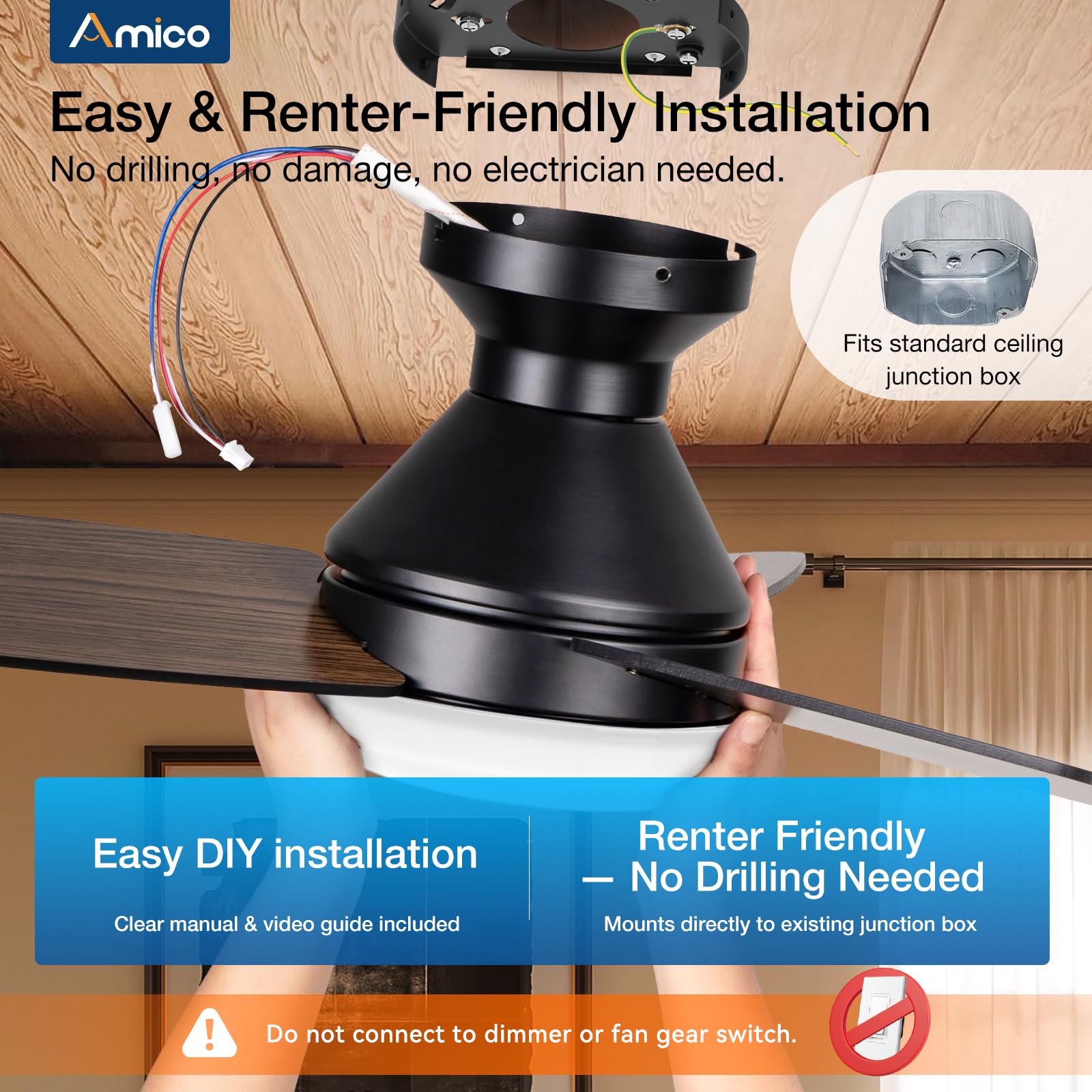 - Ceiling Fan with Light: Decorate your home with Amico ceiling fan! While bringing you coolness and comfort, it also becomes a beautiful decorative piece for your home. Our 42 inch small ceiling fan with light remote control has A energy efficiency rating, which can avoid 80% of electricity loss compared with traditional fans.